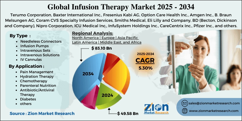 Infusion Therapy Market Size to Grow from USD 49.58 Billion in 2024 to USD 83.10 Billion by 2034, at a 5.3% CAGR